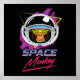 Farbenfrohe 1980er Jahre Retro-Weltraum-Affe in lila Galaxie-Comicen Kunst