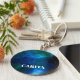 Ein benutzerdefinierter Schlüsselanhänger mit einem blauen Hintergrund. Fügen Sie diesem Produkt mithilfe der benutzerdefinierten Vorlage Ihren eigenen Namen hinzu.