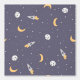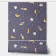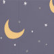 Niedliches und lustiges Raumdesign mit bunten Monden, Raketen, Planeten und Sternen auf einem blauen lila Hintergrund. Ideal für ein Jungenzimmer, ein Kinderzimmer oder ein Spielzimmer.