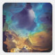 Space Nebula blau gelb Alkohol Tinte Kunst Glas Quadratischer Aufkleber