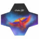 Fiery Phönix fliegt durch den Weltraum auf einer blauen und lila Nebel-Wolke in einem Sternenhimmel. Ein funkelnder Sternhaufen bildet die Phönix-Konstellation. ♡ Idyllfire