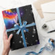 Fiery Phönix fliegt durch den Weltraum auf einer blauen und lila Nebel-Wolke. Der funkelnde Sternencluster, der den Kopf des mythischen Vogels krönt, bildet die Phönix-Konstellation. ♡ Idyllfire