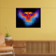 Fiery Phönix fliegt durch den Weltraum auf einer blauen und lila Nebel-Wolke. Der funkelnde Sternencluster, der den Kopf des mythischen Vogels krönt, bildet die Phönix-Konstellation. ♡ Idyllfire