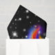 Fiery Phönix fliegt durch den Weltraum auf einer blauen und lila Nebel-Wolke. Der funkelnde Sternencluster, der jeden mythischen Vogelkopf krönt, bildet die Phönix-Konstellation. ♡ Idyllfire