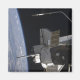 Die Raumfähre "Discovery" ist im Hintergrund des Horizonts der Erde zu sehen, der mit STS-128 bespielt wurde.