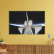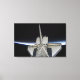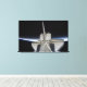 Space Shuttle Discovery überschneidet die dünne Linie der Erdatmosphäre, während sie mit der mit STS-131 ausgestatteten Internationalen Raumstation angedockt wird.