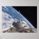 Rückgeworfen durch die Schwärze des Weltraums und des Horizonts der Erde, werden die hinteren Frachtbuchten von Space Shuttle Discovery, ihre vertikalen Stabilisatoren- und Orbitalmanövriersysteme (OMS) in diesem Bild von einem Besatzungsmitglied des STS-121 an Bord des Shuttles fotografiert. Das in Italien gebaute Leonardo Multi-Purpose Logistics Module (MPLM) ist im Frachtraum sichtbar.