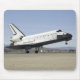 Space Shuttle Endevor's wichtigste Fahrwerk Touchs auf der Piste als Seitenansicht.