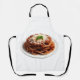 Ein Teller Spaghetti Bolognese mit Käse und Basilikum Blätter auf. Sieht köstlich aus, um als Essen gegessen zu werden. Es kann ein gutes Design auf Ihrer Schürze zu verwenden, besonders wenn Sie Spaghetti mögen!