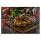 Spaghetti Puttanesca mit frischen Tomaten und Oliv Schneidebrett