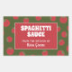 Spaghetti-Sauce, Marinarasoße oder jedes andere Etikett eines Tomatenprodukts mit einem lustigen geometrischen Muster roter Tomaten auf grünem Hintergrund. Bearbeiten Sie den gesamten Text für Ihr eigenes personalisiertes Geschenketikett.