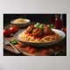 Dies ist ein von der KI generiertes Bild. Ich wollte es nur, um einen Teller Spaghetti und Fleischbällchen zu haben. Es gibt Spaghetti-Sauce um den Teller herum, aber ich dachte, es sah gut aus. Aber im wirklichen Leben, wer würde das tun.