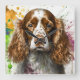 Ein künstlerisches Hundedesign mit einem farbenfrohen Spritzer.