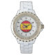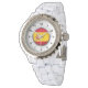 Spanien-Flagge für Frauen Kristall Weißer Enamel Armbanduhr