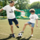 Spanischer Fußballspieler, der Punkto als Ball verwendet