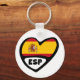 Spanien Ländercode Flag Herz Keyring. Ein cooles Herzdesign im Cartoon-Stil mit der Fahne und dem 3-Buchstaben-Ländercode des Landes. Diese Alpha-3 Ländercodes werden weltweit in Bereichen wie Kommunikation, Reisen und Sport verwendet. Und sind nützlich, um verschiedene Länder durch eindeutige Codes zu identifizieren und zu differenzieren.