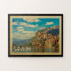 Spanien Design im Vintage Travel Stil mit der charmanten Stadt Miravet, eingebettet in den Bergen.