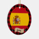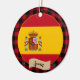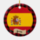 Ornamente: Rustikales Spanien dekorative Ornament mit spanischer Fahne umgeben von roten und schwarzen Büffel karierte Muster - Liebe mein Land, Weihnachtsdekoration, nationale Patrioten / Sportfans.