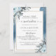 Herrliche blaue 16 . Geburtstag Einladung mit Raum für Empfang- und Masseteilen. Eleganter, blauer Fleck als Kulisse und exquisite Blumenbouquets in den oberen und unteren Ecken umgeben Ihre Details. Handgemalte Aquarelltöne und Blattwerk in staubblauen, marineblauen, königsblauen, weißen und salzigen Tönen. Golden Rahmen Ihre Informationen. Verwendung moderner Kalligraphie und Blocktypografie. Die Karte ist wieder zurück mit dem blauen Aquarellfarbenfleck. Koordinierung der verfügbaren Produkte.
