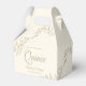 In Spanisch, anpassbare Gefälligkeitsboxen mit einem eleganten, einfachen und eleganten botanischen Design. Erstellt für eine 15. Geburtstagsparty oder "Fiesta de Quince Años" für Ihren Zwillingssohn und Ihre Tochter auf Champagner-Hintergrund mit dunkleren Champagner-Typografie. Diese Einladung ist vollständig anpassbar, sodass Sie die Farben, Schriftart und Typografie an Ihre besondere Veranstaltung anpassen können.