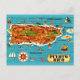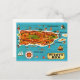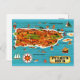 Eine wunderschöne Vintage illustrierte Karte von Puerto Rico mit den Ortsnamen in Spanisch auf einer Postkarte umgelegt.