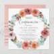 Feiern Sie die Bestätigung Ihrer Tochter mit dieser wunderschönen Rose goldenen Blumenladen. Dieselbe Einladung ist auch auf Englisch verfügbar. Design zeigt Ihre Details, umgeben von exquisiten Aquarellblumenkranz mit handbemalten Aquarellfarben-Blume und Blattwerk in den Farben rot, staubige Rose, Elfenbein, Pfirsich, Minzblau, Grau und Salbei. Verwendung von Script und Block moderne Typografie. Rückseite der Karte mit rosa und zarten goldenen Streifen der Rose. Sie können die Größe, den Stil und die Position des Schriftartes ändern, indem Sie Anpassen auswählen. Teil unserer Hochzeitskollektion "Ethereal Blush Peach".