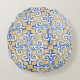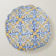 Spanische Fliesen - Azulejo Blau, Gelb und Weiß Rundes Kissen