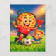Spanische Paella gegen italienische Pizza Fußballd Postkarte