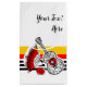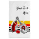 Whimsikisches Design gezeichnet in einem Retro-Stil mit Souvenirs aus einem spanischen Urlaub; eine schmiedeeiserne Gitarre, lackierter Ventilator und rote Rose auf einem gestreiften Hintergrund. Ein individualisierbares Design in Schwarz, Weiß, Rot und Gelb für Sie, um mit Ihrem eigenen Text, Bildern und Ideen zu personalisieren. Ein originelles digitales Kunstbild.