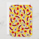 Whimsikisches Design gezeichnet in einem Retro-Stil mit Souvenirs aus einem spanischen Urlaub; eine schmiedeeiserne Gitarre, Lack-Ventilator und rote Rose. Ein individualisierbares Design in Schwarz, Weiß, Rot und Gelb für Sie, um mit Ihrem eigenen Text, Bildern und Ideen zu personalisieren. Ein originelles digitales Kunstbild.