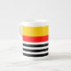 Tasse mit gestreiftem Design in Gelb, Rot, Schwarz und Weiß. Erstellt zur Abstimmung mit dem spanischen Souvenirs-Sortiment von Küche und Eßzubehör.