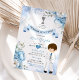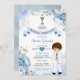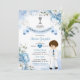 Spanischer Junge Dusty Blue Floral Primera Comunión Einladung
