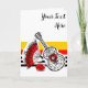 Whimsikisches Design gezeichnet in einem Retro-Stil mit Souvenirs aus einem spanischen Urlaub; eine schmiedeeiserne Gitarre, lackierter Ventilator und rote Rose auf einem gestreiften Hintergrund. Ein individualisierbares Design in Schwarz, Weiß, Rot und Gelb für Sie, um mit Ihrem eigenen Text, Bildern und Ideen zu personalisieren. Ein originelles digitales Kunstbild.
