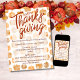 Spanish Happy Thanksgiving Checkered Orange und Tan Pumpkins Einladung - Editable Vorlage verfügbar als Sofortdownload ideal für Last Minute Party lädt.