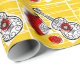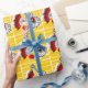 Whimsikisches Design gezeichnet in einem Retro-Stil mit Souvenirs aus einem spanischen Urlaub; eine schmiedeeiserne Gitarre, Lack-Ventilator und rote Rose. Ein individualisierbares Design in Schwarz, Weiß, Rot und Gelb für Sie, um mit Ihrem eigenen Text, Bildern und Ideen zu personalisieren. Ein originales digitales Kunstbild von QuirkyChic.