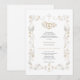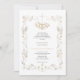 Celebre su unión con esta elegante invitación de boda, que cuenta con un delicado borde floral en oro y una cruz simbólica. El hermoso diseño botánico evoca un sentimiento de romance atemporal y bendición divina, perfecto para una ceremonia tradicional. Anuncie su gran día con gracia y sofisticación, invitando a sus seres queridos a compartir su alegría mientras se embarcan juntos en este viaje sagrado