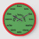 A great idea for Spanish teachers and students of the Spanish language! Wall clock has the written words for the numbers 1-12. Around the center reads the frage "What time is it?"in Spanish (Was hora es?). Hang it in the library, den, beach house, or office. This clock would make a unique housewarming or boatwarming (or houseboat warming) gift. Schluckbar in two sizes of round clock, gold in square clock. Copyright Scarebaby Design.