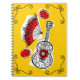 Whimsikisches Design gezeichnet in einem Retro-Stil mit Souvenirs aus einem spanischen Urlaub; eine schmiedeeiserne Gitarre, Lack-Ventilator und rote Rose. Ein individualisierbares Design in Schwarz, Weiß, Rot und Gelb für Sie, um mit Ihrem eigenen Text, Bildern und Ideen zu personalisieren. Ein originelles digitales Kunstbild.