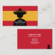 A red and yellow business card for Spanish language teacher or tutor with a silhouette of a person with a sombrero and full contact information on the back.