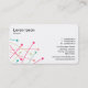 Eine stilvolle, moderne Visitenkartenvorlage mit einem abstrakten Motiv aus Vektorlinien, die jeweils in einem soliden kreisförmigen Punkt enden, inspiriert durch wissenschaftliche Abbildungen von Dingen wie Partikelspur, obwohl viele Dinge darstellen könnte oder einfach nur als eine attraktive Dekoration. Firmenname und Geschäftstyp auf der Vorderseite rechts unten. Name und andere Kontaktdaten auf der Rückseite mit dem gleichen Motiv wie auf der Vorderseite, außer gedreht und in der unteren links Ecke platziert, wodurch ein attraktives, abwechslungsreiches und dennoch konsistentes Design auf beiden Seiten entsteht.