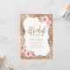 Imitate mit goldfarbenem Glitzer-Hintergrund und blütenrosa Blumenschrift mit "Brautparty"-Schrift in der Mitte, elegant und stilvoll, großartige Brautdusche Einladungen.