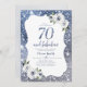 Imitats funkeln silberblau Glitzer "70 und fabelhaft" Drehbuch mit staubblauen und weißen Blumen, elegant und stilvoll, großartige 70. Geburtstagsfeier Einladungen.