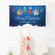 Das elegante Weihnachtsbanner mit sechs bunten Weihnachtsbällen auf schneebedecktem Nachthintergrund. Personalisieren Sie es mit Ihrem Namen.