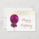Sparkle Gold & Fuchsia Floral Happy Birthday Balloon Note Card