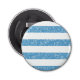 Trendy und lustig Sparkle Glitzer Look Stripes Magnet Flasche Opener. Dieses Design zeichnet sich durch ein funkelnd Imitat Glitzer gestreift Muster in blau. Fügen Sie diesem Design einen Text hinzu, um ihm eine persönliche Touch zu geben.