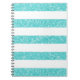 Trendy und unterhaltsam Sparkle Glitzer Look Stripes Notebook. Dieses Design zeichnet sich durch ein funkelnd Imitat Glitzer gestreift Muster in Türkis. Fügen Sie diesem Design einen Text hinzu, um ihm eine persönliche Touch zu geben.