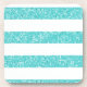 Trendy und lustig Sparkle Glitzer Look Stripes Untersetzer Set. Dieses Design zeichnet sich durch ein funkelnd Imitat Glitzer gestreift Muster in Türkis. Fügen Sie diesem Design einen Text hinzu, um ihm eine persönliche Touch zu geben.