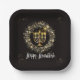 Hanukkah Party-Design mit goldener Menorah und silber-goldene Glitzern auf schwarzem Hintergrund.