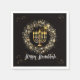 Hanukkah Party-Design mit goldener Menorah und silber-goldene Glitzern auf schwarzem Hintergrund.