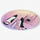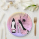 Diese Teller sind perfekt für Sweet 16 oder Quinceañera Partys oder für jede Veranstaltung, die die Mode feiert. Rosa Glitzer Pumpen mit rosa Pfauenfeder und Hintergrund.